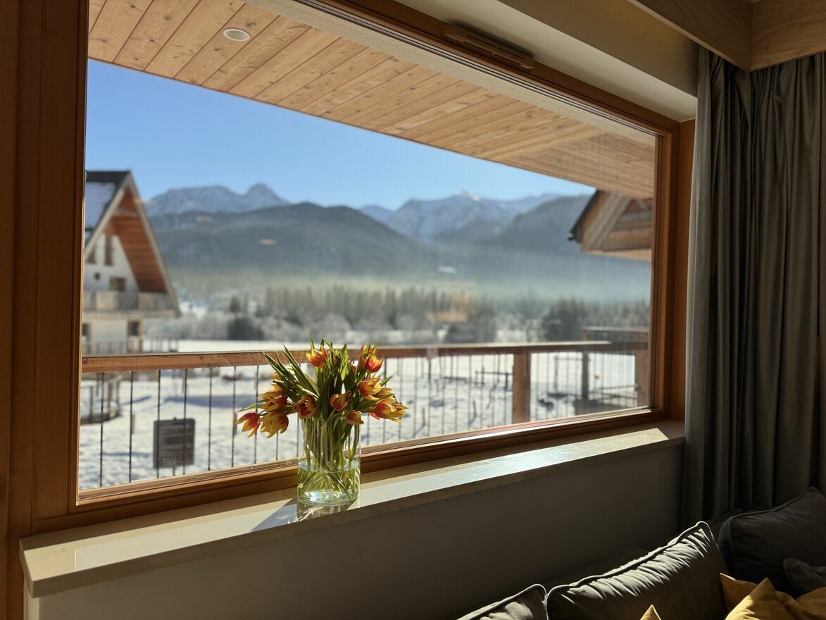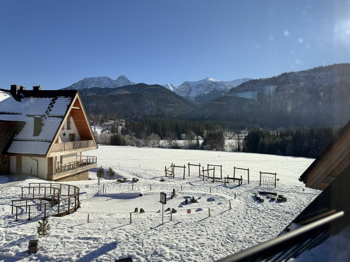 - apartament na 1 piętrze: 2 sypialnie, salon, kuchnia, łazienka, duży taras widokowy